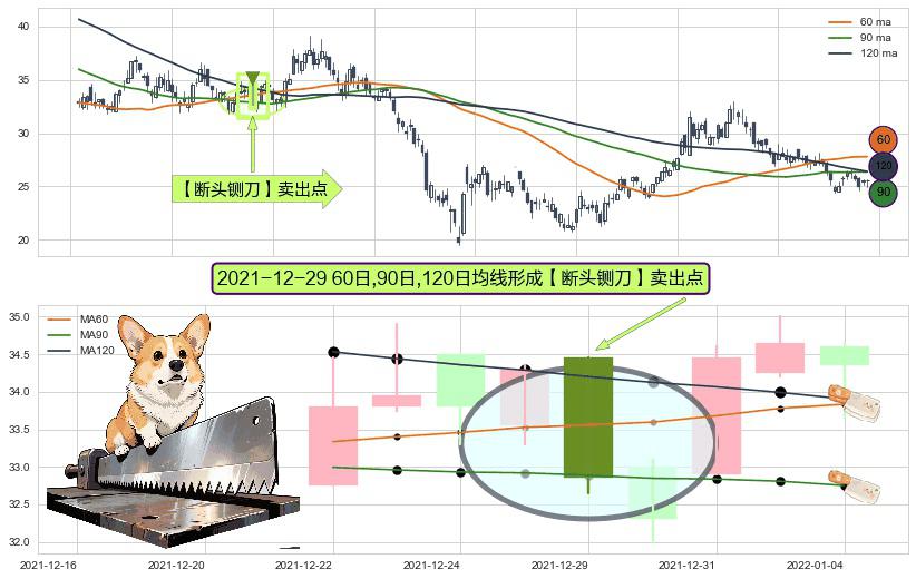 ⚀ 2021-12-29日显现 60日-90日-120日均线 【断头铡刀】卖出点 看空信号,后市看跌,卖出