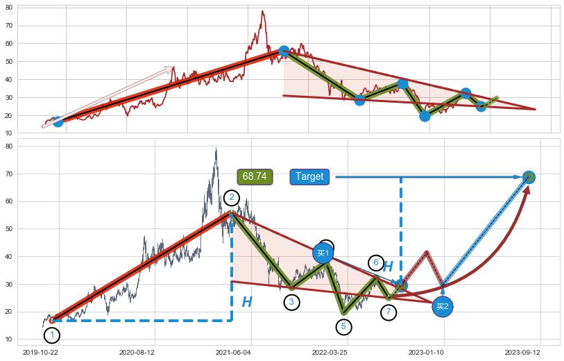 ➢ 最小中继整理涨幅→𝐇: 39.16 (𝐇楔型旗杆的长度:楔型起点→顶点)