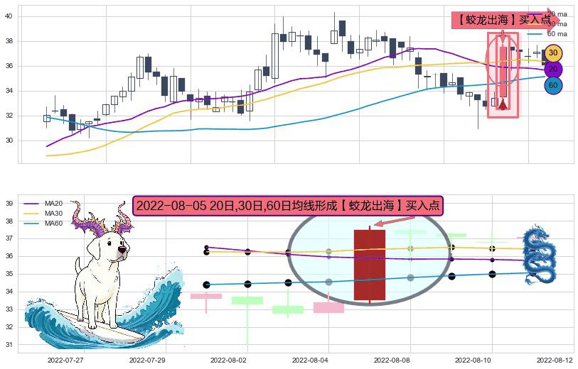 ⚀ 2022-08-05日显现 20日-30日-60日均线 【蛟龙出海】买入点 看多信号,后市看涨,买入