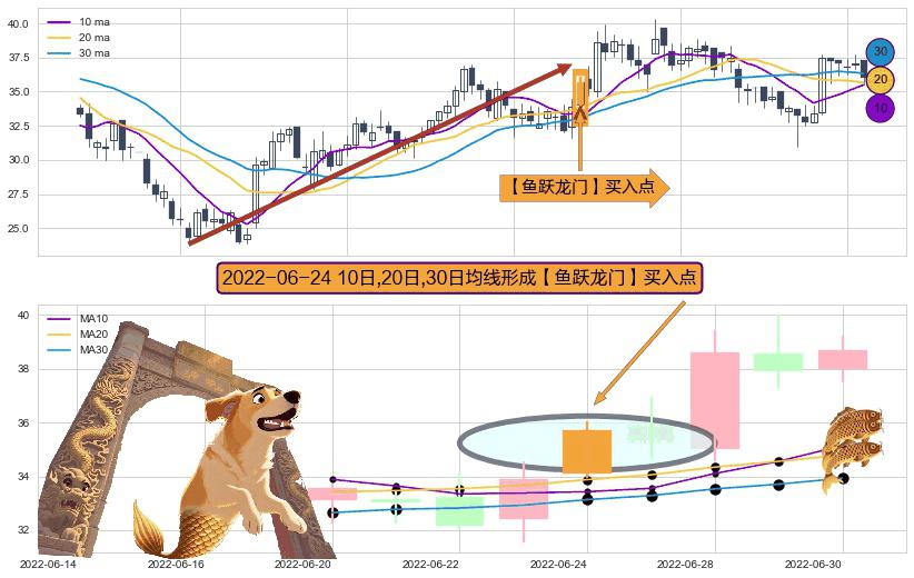 ⚀ 2022-06-24日显现 10日-20日-30日均线 【鱼跃龙门】买入点 看多信号,后市看涨,买入