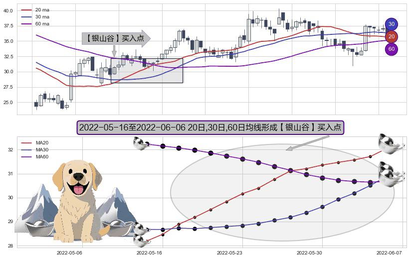 ⚀ 2022-05-17-日至2022-06-06-日显现 20日-30日-60日均线 【银山谷】买入点 看多信号,后市看涨,买入