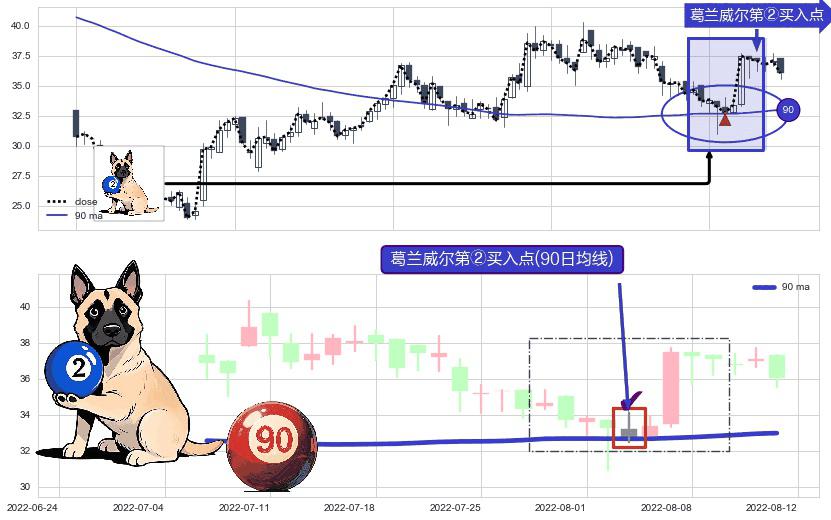 ⚀ 2022-08-03-日显现 葛兰威尔均线 90日均线 第②买入点 上升趋势的中继信号,后市看涨,买进信号