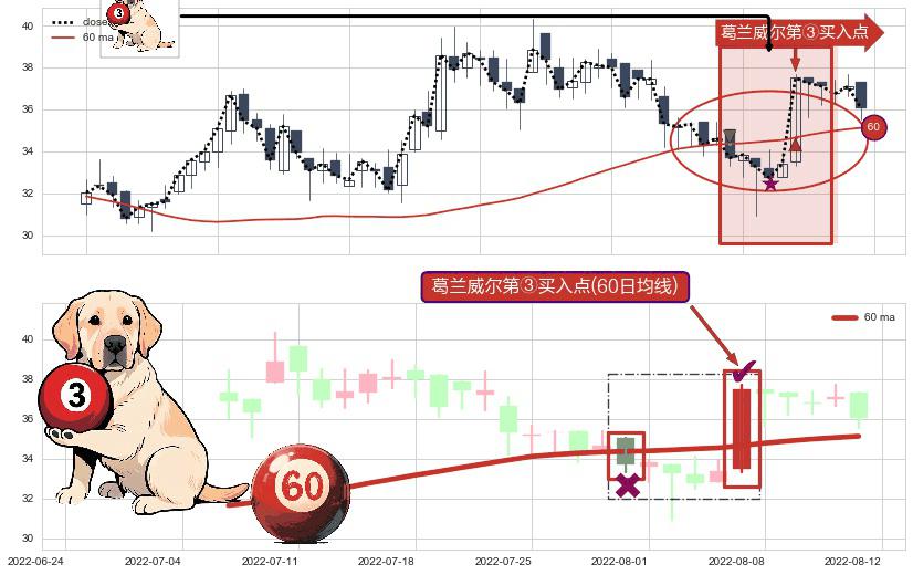 ⚀ 2022-08-05-日显现 葛兰威尔均线 60日均线 第③买入点 上升趋势的中继信号,后市看涨,买进信号