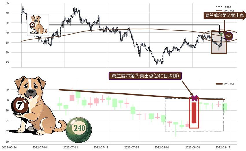 ⚀ 2022-08-05-日显现 葛兰威尔均线 240日均线 第⑦卖出点 下降趋势的中继信号,后市看跌,卖出信号