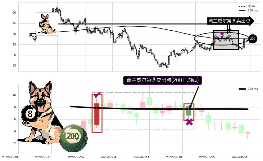 ⚀ 2022-07-19-日显现 葛兰威尔均线 200日均线 第⑧卖出点 下降趋势的中继信号,后市看跌,卖出信号