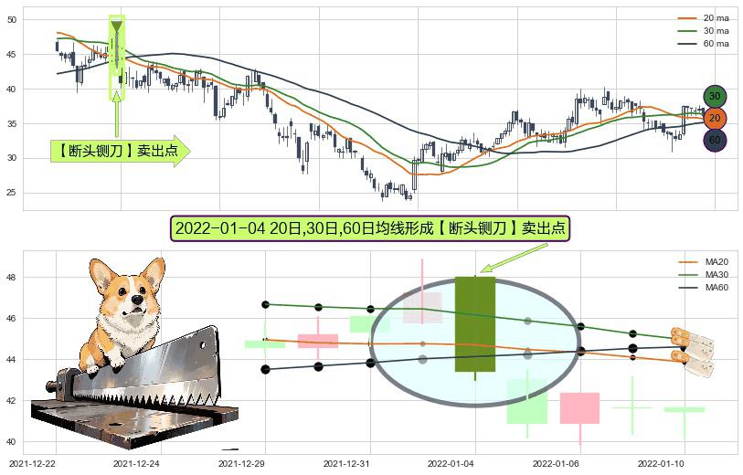 ⚀ 2022-01-04日显现 20日-30日-60日均线 【断头铡刀】卖出点 看空信号,后市看跌,卖出