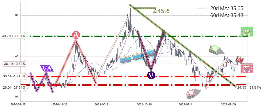 ➢ 【仅预测突破】最后价格:36.05与预测突破价格:41.52→【空间中等】后续最小【反转】第一目标价格→(2022-09-29: 53.05 )