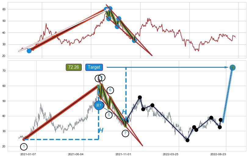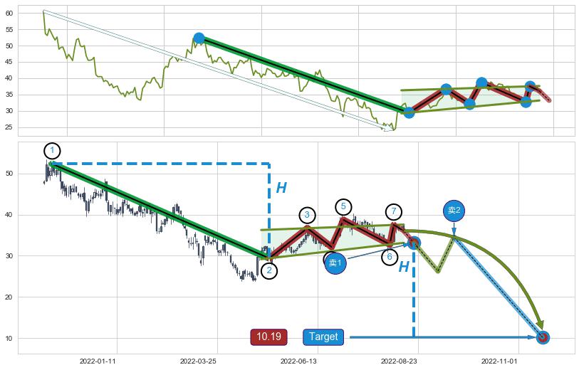 ➣ 最小中继整理跌幅→𝐇: 22.95 (𝐇旗杆的长度:旗杆起点→顶点)