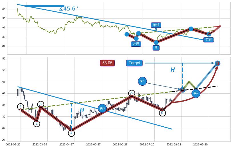➢ 【买0】下跌趋势线在→(2022-05-30: 32.81 )被突破,反转趋势形成
