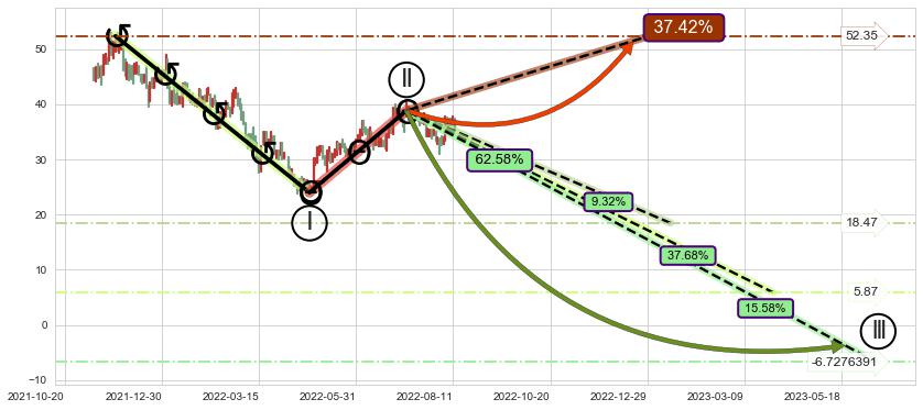 ➣ D点拟合预测价格47.45,距离最后交易收盘价格36.05相差 +31.63%