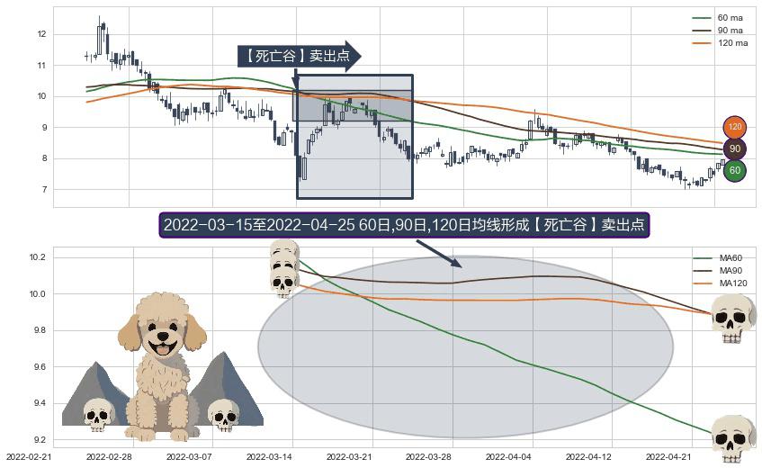 形态多维评估: ⚀ 2022-03-16-日至2022-04-25-日显现 60日-90日-120日均线 【死亡谷】卖出点 看空信号,后市看跌,卖出