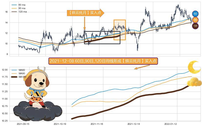 ⚀ 2021-10-22日-2022-01-24日显现 60日-90日-120日均线 【烘云托月】买入点 看多信号,后市看涨,买入