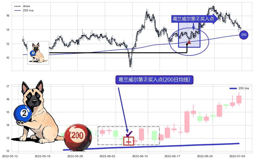 ⚀ 2022-06-07-日显现 葛兰威尔均线 200日均线 第②买入点 上升趋势的中继信号,后市看涨,买进信号