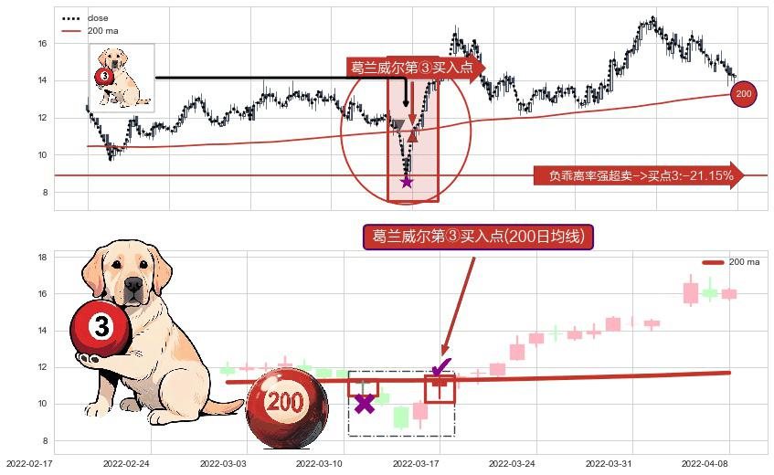 ⚀ 2022-03-17-日显现 葛兰威尔均线 200日均线 第③买入点 上升趋势的中继信号,后市看涨,买进信号