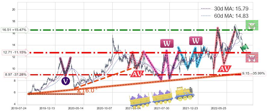 ♘ 支撑价格位8.97,可信任强度73.07%,距离最后交易2022-08-12形成的收盘价格14.30相差 -37.28%