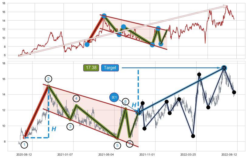 ➣ 最小中继整理涨幅→𝐇: 6.64 (𝐇旗杆的长度:旗杆起点→顶点)