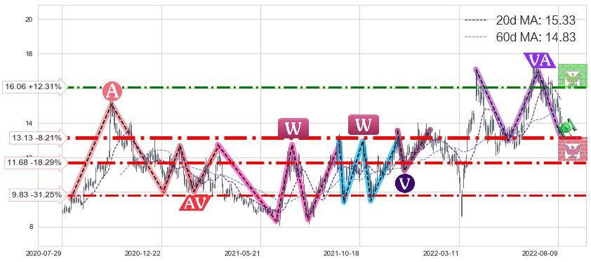♘ 阻力价格位16.06,可信任强度65.20%,距离最后交易2022-08-12形成的收盘价格14.30相差 +12.31%