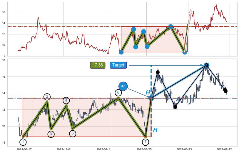 ➢ AI预测: 假定反转启动后, 第❷目标位置(2023-09-14, 14.80)