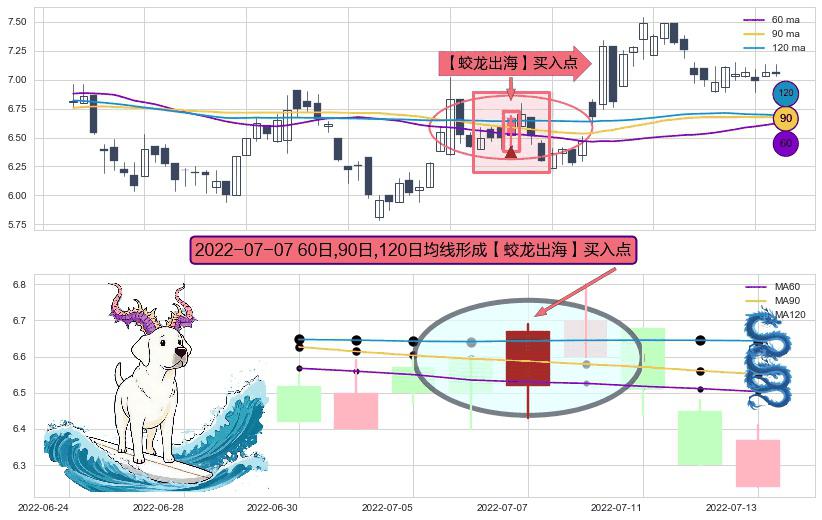 ⚀ 2022-07-07日显现 60日-90日-120日均线 【蛟龙出海】买入点 看多信号,后市看涨,买入