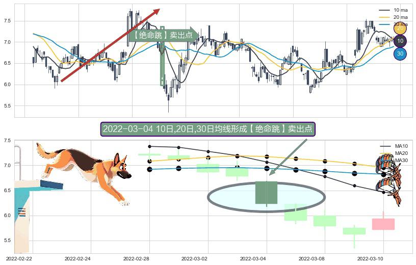 ⚀ 2022-03-04日显现 10日-20日-30日均线 【绝命跳】卖出点 看空信号,后市看跌,卖出