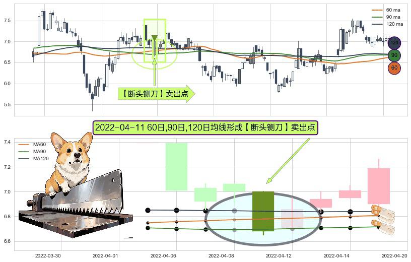 ⚀ 2022-04-11日显现 60日-90日-120日均线 【断头铡刀】卖出点 看空信号,后市看跌,卖出