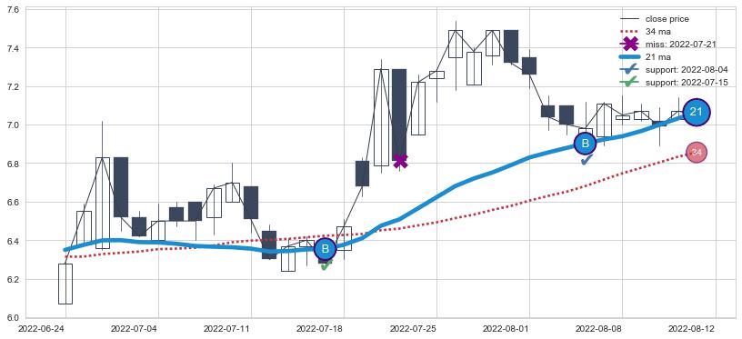 ⚀ 2022-07-22日显现 3日-8日-21日均线 【鱼跃龙门】买入点 看多信号,后市看涨,买入