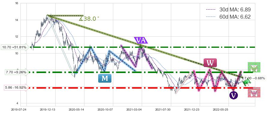 ♘ 阻力价格位7.70,可信任强度90.44%,距离最后交易2022-08-12形成的收盘价格7.05相差 +9.26%