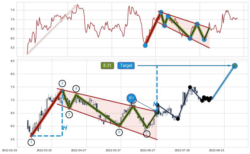 ➢ AI预测: 假定反转启动后, 第❷目标位置(2023-02-06, 6.76)
