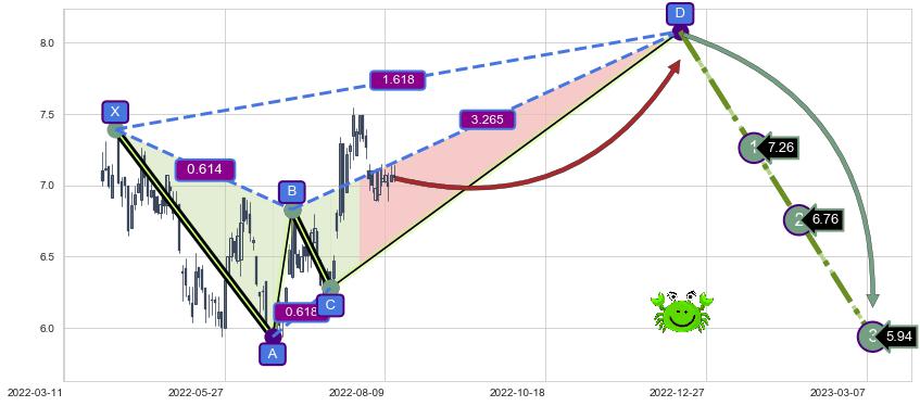 ➣ 未完成【螃蟹】形态起点X: 2022-04-04, 已到达C点: 2022-07-15, 预测最终D点: 2022-12-15, 共166交易日