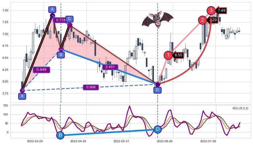 ➣ 已完成【蝙蝠】形态起点X: 2022-03-15, 终点D: 2022-06-20, 共64交易日