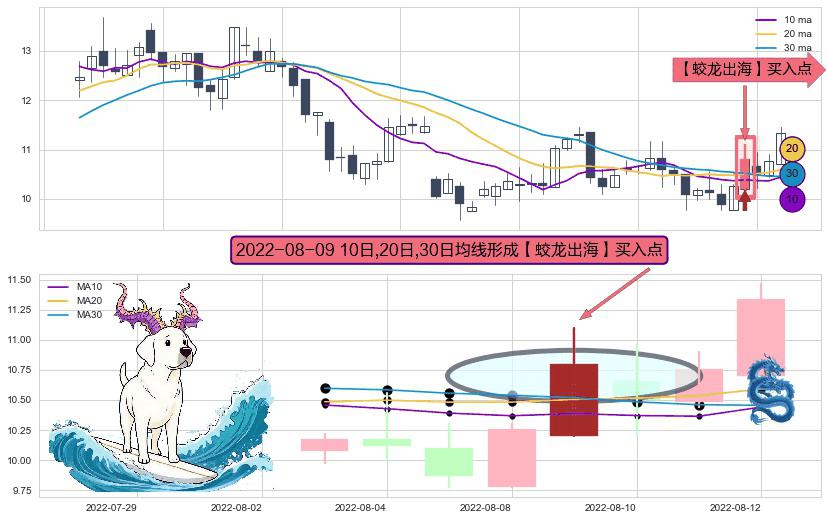 ⚀ 2022-08-09日显现 10日-20日-30日均线 【蛟龙出海】买入点 看多信号,后市看涨,买入
