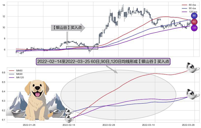 ⚀ 2022-02-15-日至2022-03-25-日显现 60日-90日-120日均线 【银山谷】买入点 看多信号,后市看涨,买入