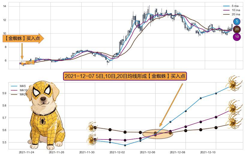 ⚀ 2021-12-07日显现 5日-10日-20日均线 【金蜘蛛】买入点 看多信号,后市看涨,买入