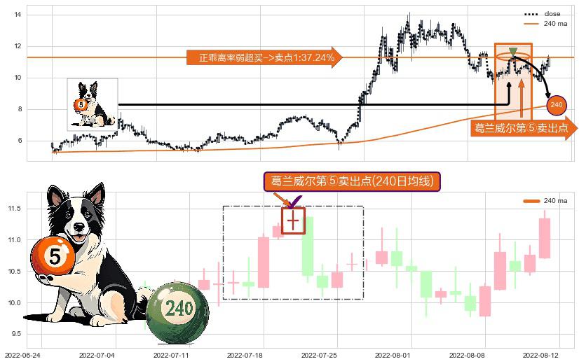 ⚀ 2022-07-20-日显现 葛兰威尔均线 240日均线 第⑤卖出点 上升趋势均值回复的短线回落信号,后市看跌,卖出信号