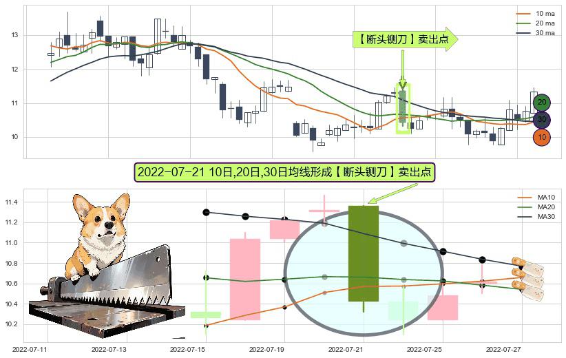 ⚀ 2022-07-21日显现 10日-20日-30日均线 【断头铡刀】卖出点 看空信号,后市看跌,卖出