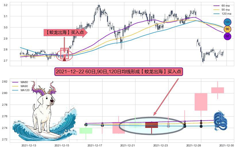 ⚀ 2021-12-22日显现 60日-90日-120日均线 【蛟龙出海】买入点 看多信号,后市看涨,买入