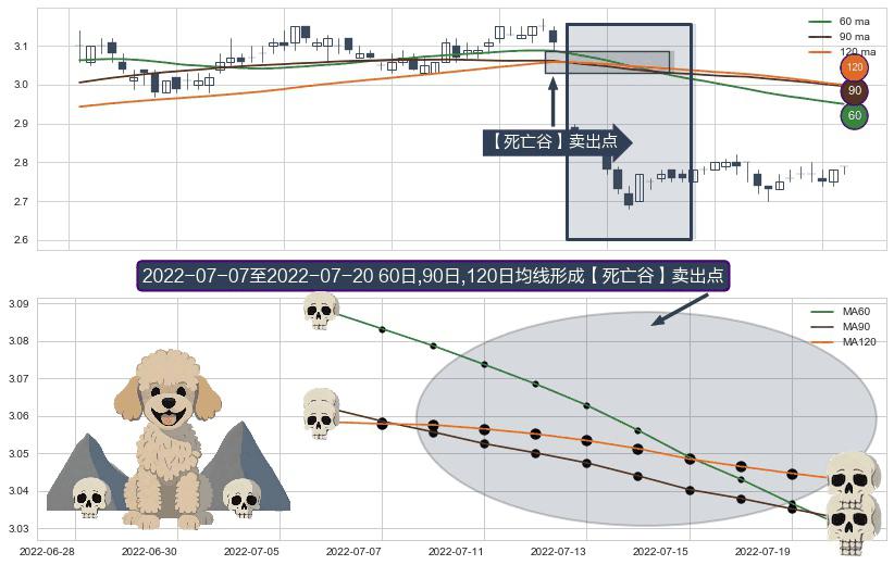 ⚀ 2022-07-08-日至2022-07-20-日显现 60日-90日-120日均线 【死亡谷】卖出点 看空信号,后市看跌,卖出