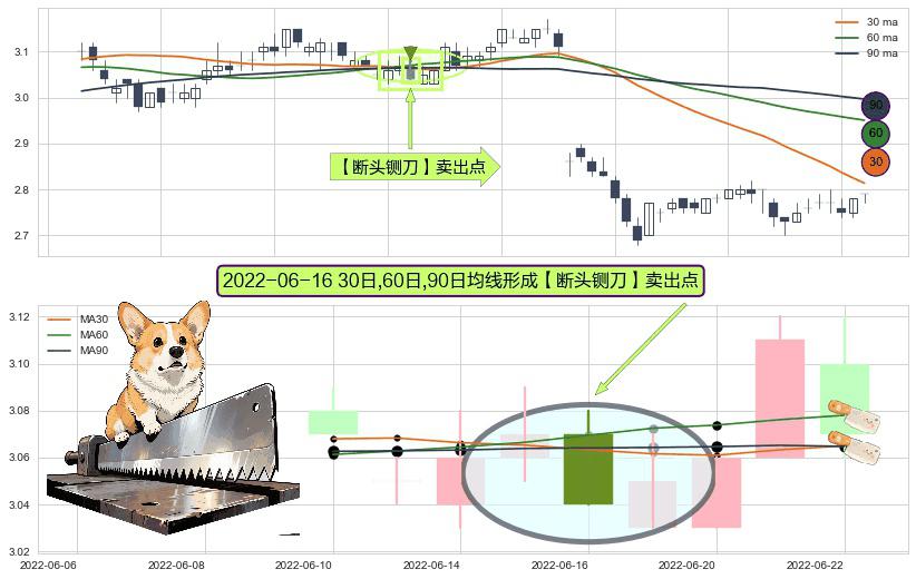 ⚀ 2022-06-16日显现 30日-60日-90日均线 【断头铡刀】卖出点 看空信号,后市看跌,卖出
