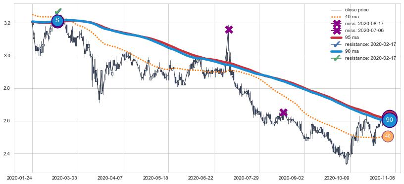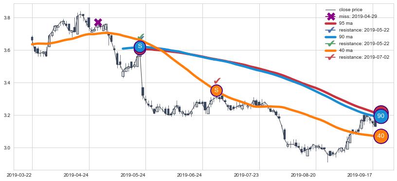 ⚀ 中期均线MA90下穿长期均线MA120形成的交叉是标准 死亡交叉