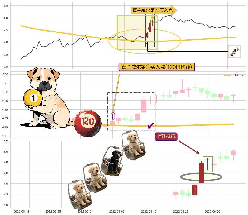 | 3 🅚:旭日东升 ➕ 🎢:葛兰威尔第①买入点买入点信号形成后,猜想后续下跌趋势反转上涨趋势(均值回复) ☞ 看多信号 ⇥ 【均线】交织【🅚线】⇥ 综合量化分数: 57 | > |