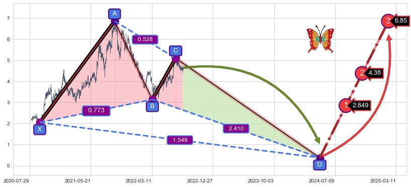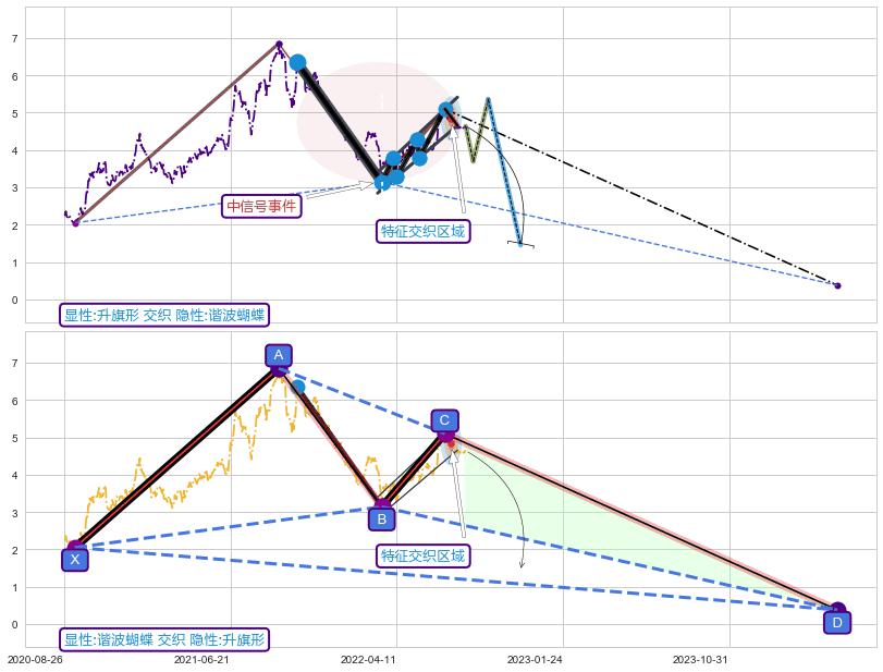 ➣ 未完成【蝴蝶】形态起点X: 2020-09-14, 已到达C点: 2022-07-08, 预测最终D点: 2024-04-30, 共916交易日