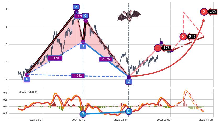 ➣ 已完成【蝙蝠】形态起点X: 2021-03-24, 终点D: 2022-03-15, 共241交易日