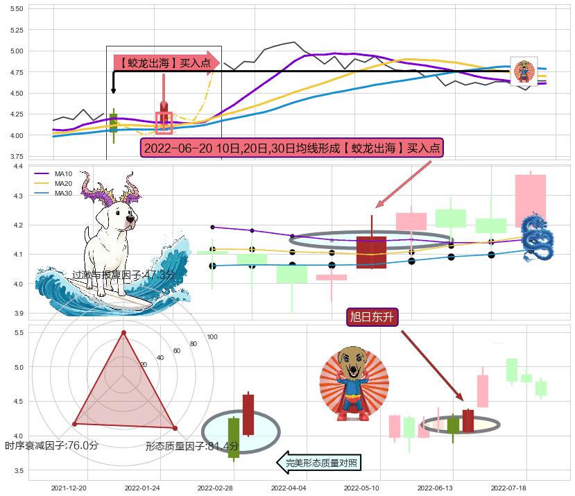 | 5 🅚:旭日东升 ➕ 🎢:【鱼跃龙门】买入点均线组合买入点信号形成后,猜想后续充分蓄势之后,上涨突破关键阻力位 ☞ 看多信号 ⇥ 【均线】交织【🅚线】⇥ 综合量化分数: 56 | > |