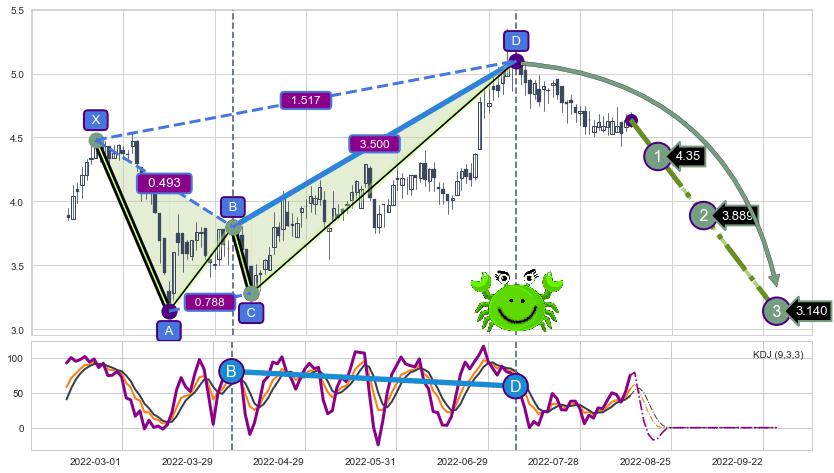 ➢ AI预测: 假定反转如期而至,第❶价格目标位置(2022-08-22, 4.35)