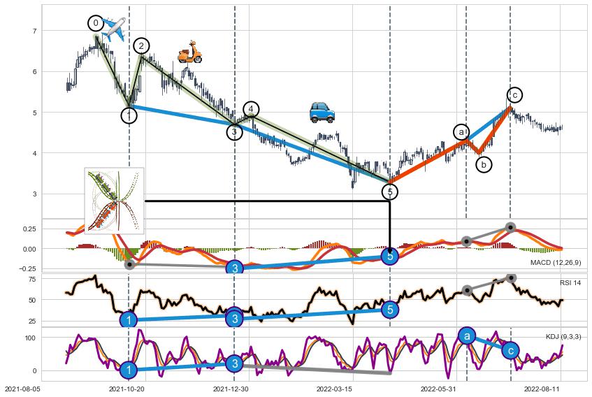 ➣ 1,3,5驱动浪MACD, RSI, KDJ走势都出现【常规背离】反转信号增强