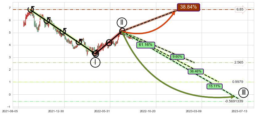 ➢ 循环浪继续向下【最低】位置(2023-07-13, -0.5691339),匹配聚类样本比例24.71%, 可能性概率15.11%