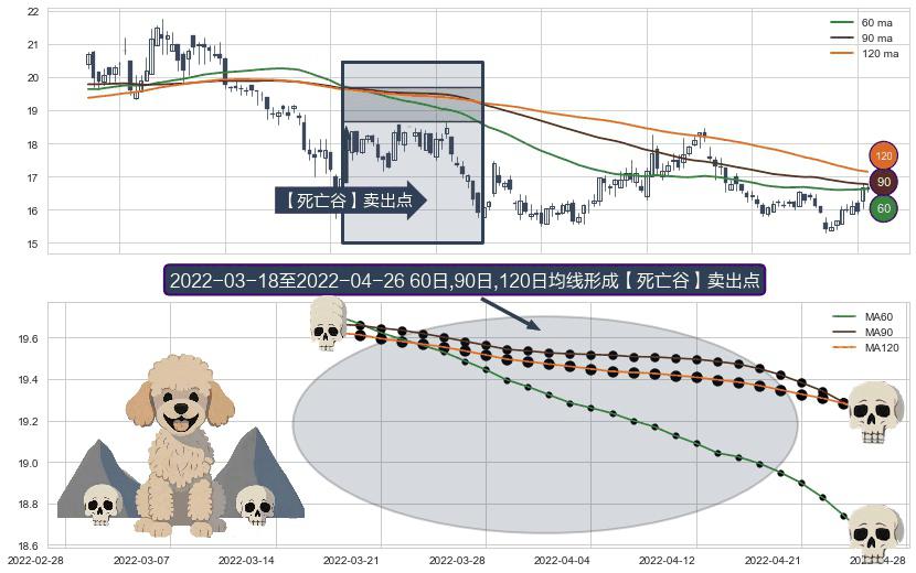 ⚀ 2022-03-21-日至2022-04-26-日显现 60日-90日-120日均线 【死亡谷】卖出点 看空信号,后市看跌,卖出