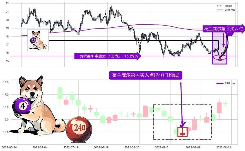 ⚀ 2022-08-03-日显现 葛兰威尔均线 240日均线 第④买入点 下降趋势均值回复的短线反弹信号,后市看涨,买进信号