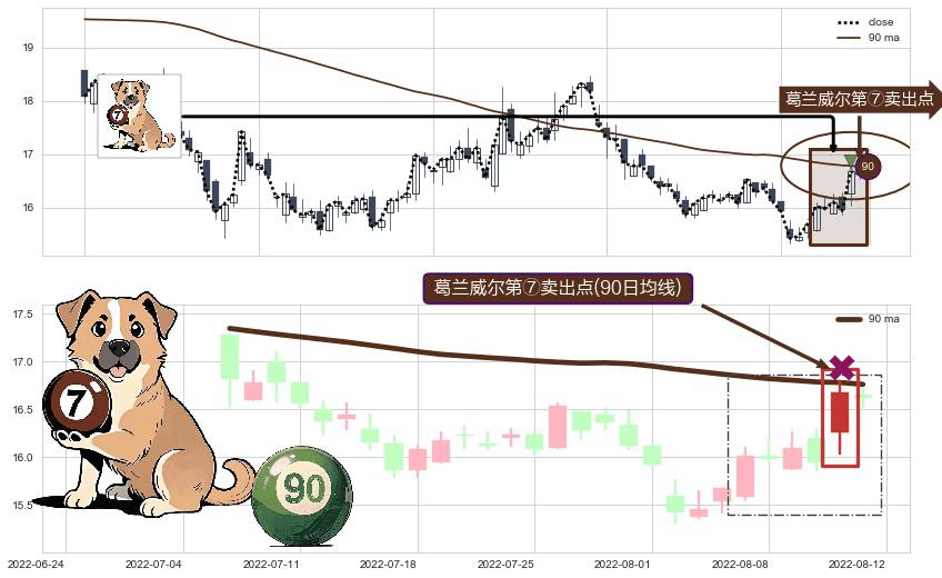 ⚀ 2022-08-11-日显现 葛兰威尔均线 90日均线 第⑦卖出点 下降趋势的中继信号,后市看跌,卖出信号