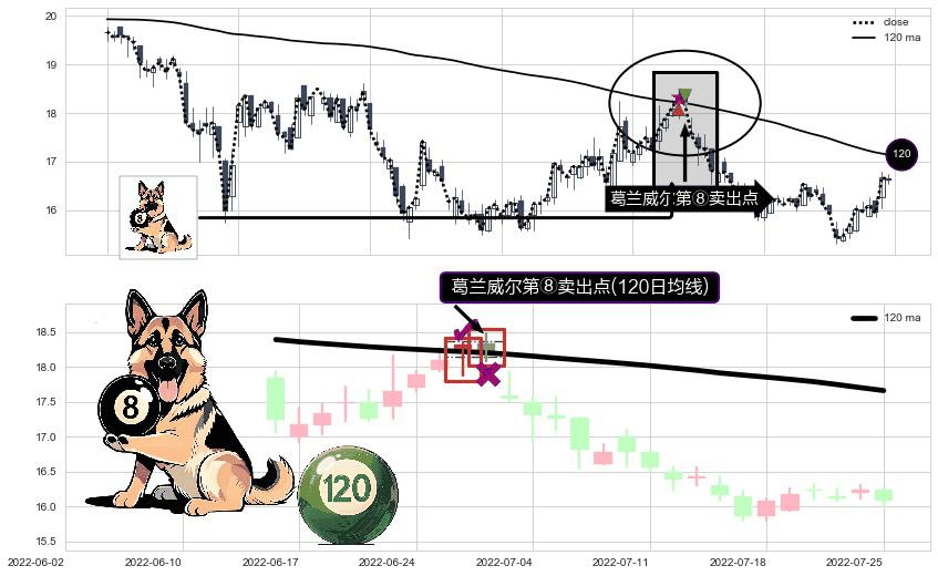 ⚀ 2022-06-29-日显现 葛兰威尔均线 120日均线 第⑧卖出点 下降趋势的中继信号,后市看跌,卖出信号
